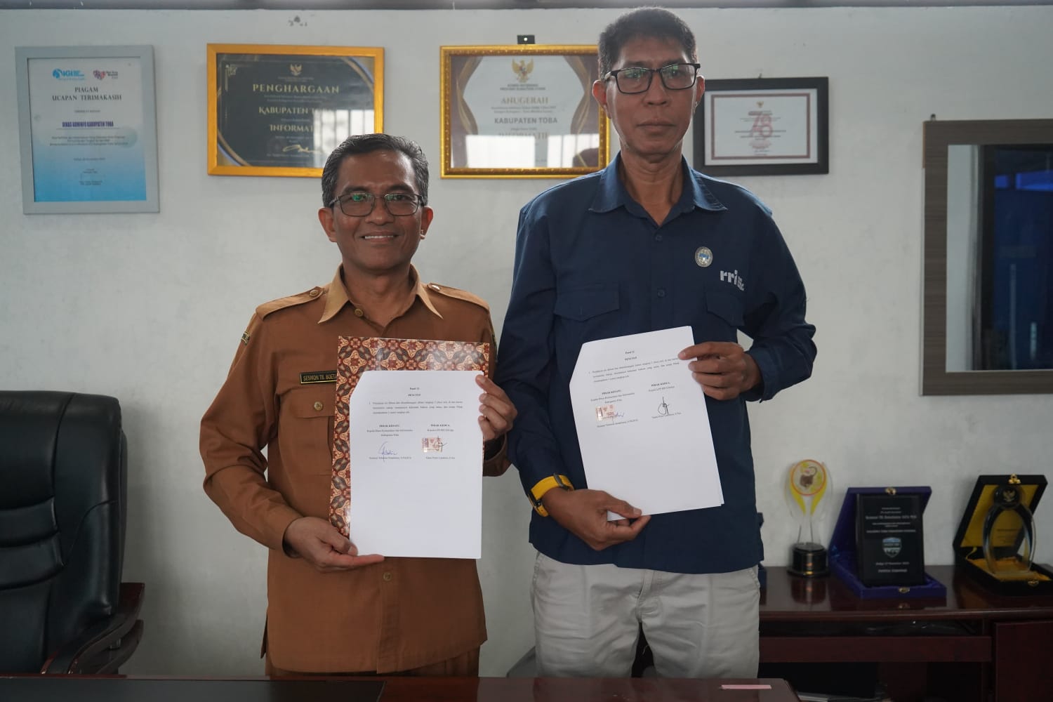 Usai audiensi, kegiatan dilanjutkan dengan penandatanganan MoU (Memorandum of Understanding) antara Kepala RRI Sibolga Yanni Peter Latuheru dan Kepala Dinas Kominfo Toba Sesmon TB. Butarbutar di ruang kerja Kepala Dinas Kominfo Toba sebagai bentuk penguatan sinergi dan kerja sama ke depan.