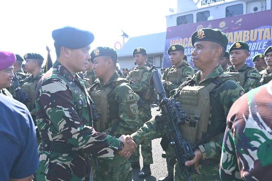 Klikbangsa.com Papua -Komandan Lanud Sultan Hasanuddin, Marsma TNI Arifaini Nur Dwiyanto, M.Han., menghadiri Upacara Penyambutan Satuan Tugas Pengamanan Perbatasan (Satgas Pamtas) RI–Papua Nugini (PNG) Yonif 432/Waspada Setia Jaya (WSJ), yang baru saja menyelesaikan penugasannya di wilayah perbatasan Papua. Acara penyambutan digelar secara khidmat di Dermaga Layang, Mako Lantamal VI Makassar, Kamis (1/5/2025).