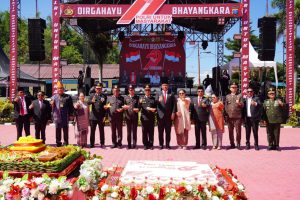Klikbangsa.com (Toba) – Perayaan puncak HUT ke -79 Bhayangkara di Mapolres Toba pada Selasa (1/7/2025) dimulai dengan upacara. Kapolres Toba ABKP Vinsensius Jimmy Parapaga yang bertindak sebagai Inspektur upacara membacakan amanat Kapolda Sumut, Irjen (Pol) Whisnu Hermawan Februanto. Dalam sesi upacara, Kapolres Toba juga memberikan penghargaan Satya Lencana kepada personel dengan 8 tahun masa pengabdian.