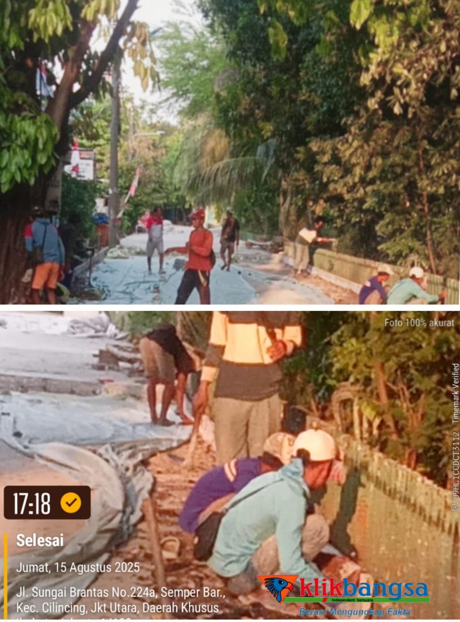 Hasil pantauan sejumlah awak media terkait Peningkatan Jalan dan Kelengkapannya di Kota Administrasi Jakarta Utara (Fisik Zona 2 Lokasi 1) dan lebih tepatnya di Jalan Sungai Kampar XI Rt 13/Rw 01 Kelurahan Semper Barat Kecamatan Cilincing, Jakarta Utara. Tidak ditemukan Papan Proyek (Banner). Pengakuan salah seorang peekerja dan tidak disebut namanya, mengaku dirinya baru saja bekerja di proyek tersebut jadi kalau ditanya soal Papan Proyek, “dirinya tidak mengetahuinya,” ujarnya. Jumat. (15/8/2025), tepat pukul 17: 08.