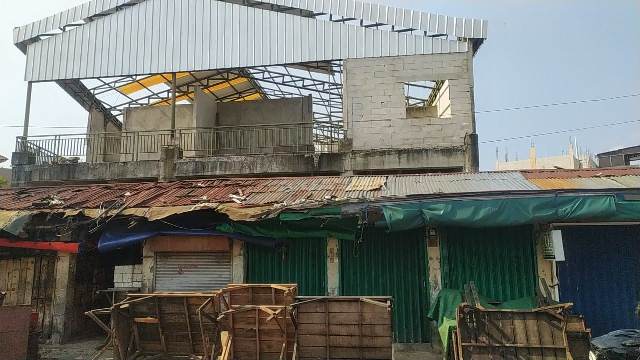 Pantauan langsung klikbangsa.com memperlihatkan fakta yang sulit disangkal: bangunan semi permanen yang terbengkalai, atap rusak, kios-kios yang membusuk tak terurus, hingga gerobak reyot berserakan menjadi pemandangan sehari-hari. Bagian atas bangunan tampak seperti proyek gagal- dinding bata dibiarkan telanjang, atap baja ringan belum rampung, jendela menganga tak berdaun, dan sekelilingnya dihiasi seng berkarat yang sobek di sana-sini.