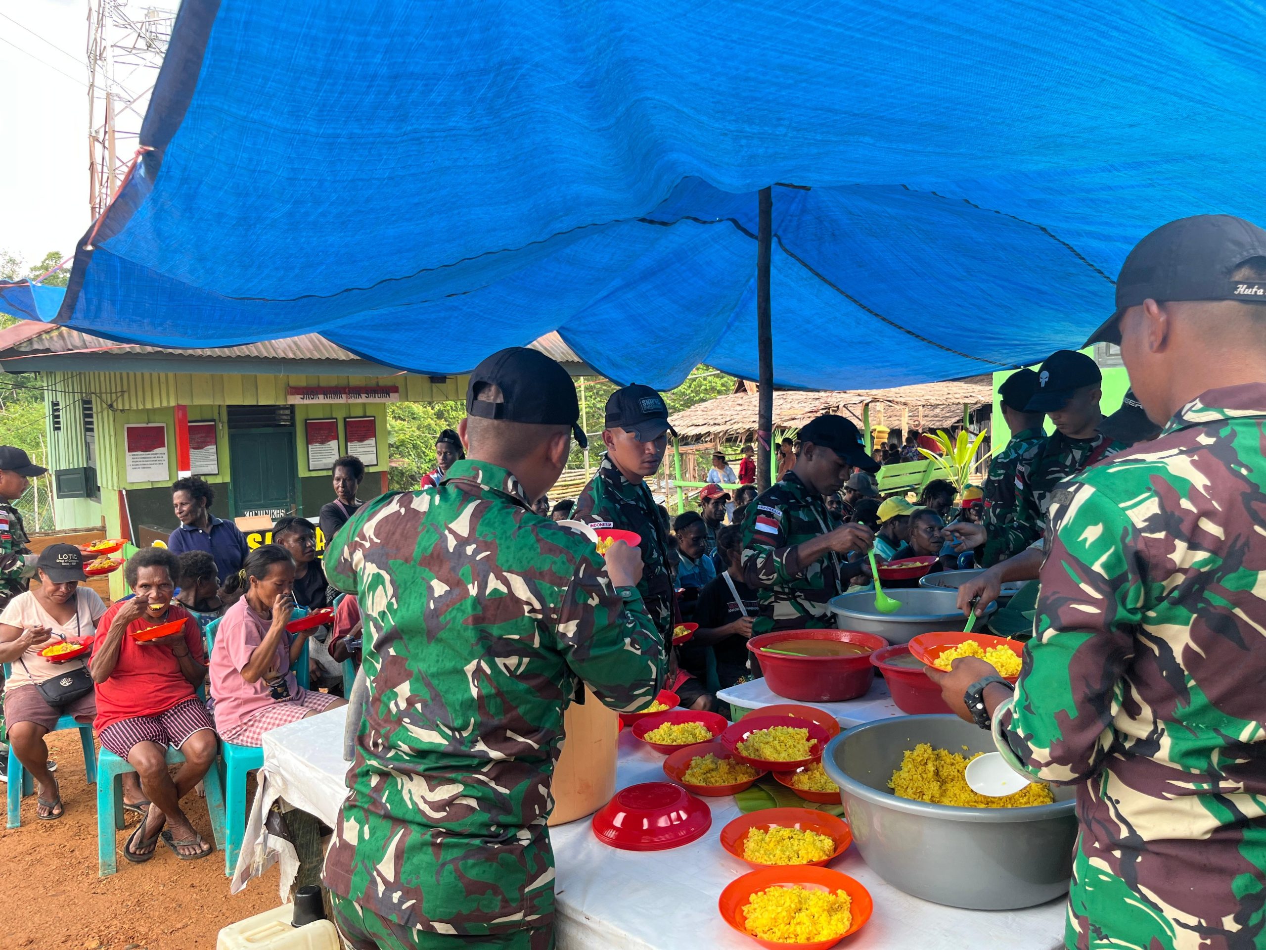 Klikbangsa.com-Boven Digoel. Nasi kuning bukan sekadar hidangan tradisional, melainkan simbol kebersamaan dan rasa syukur dalam perayaan Hari Ulang Tahun ke-80 Republik Indonesia yang digelar Satgas Yonif 126/KC bersama masyarakat Kombut. Warna kuning yang cerah dan rasa hangatnya menjadi lambang harapan dan semangat merah putih yang terus menyala di pelosok tanah air, Jumat (22/8/2025).