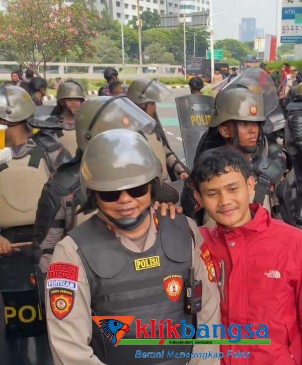 Klikbangsa.com-Jakarta. Aksi demonstrasi mahasiswa dan masyarakat di depan Gedung DPR/MPR RI, Jumat (29/8), berlangsung aman dan kondusif. Hal ini tak lepas dari pendekatan humanis aparat kepolisian, salah satunya yang viral di media sosial TikTok melalui akun Jakarta.id.