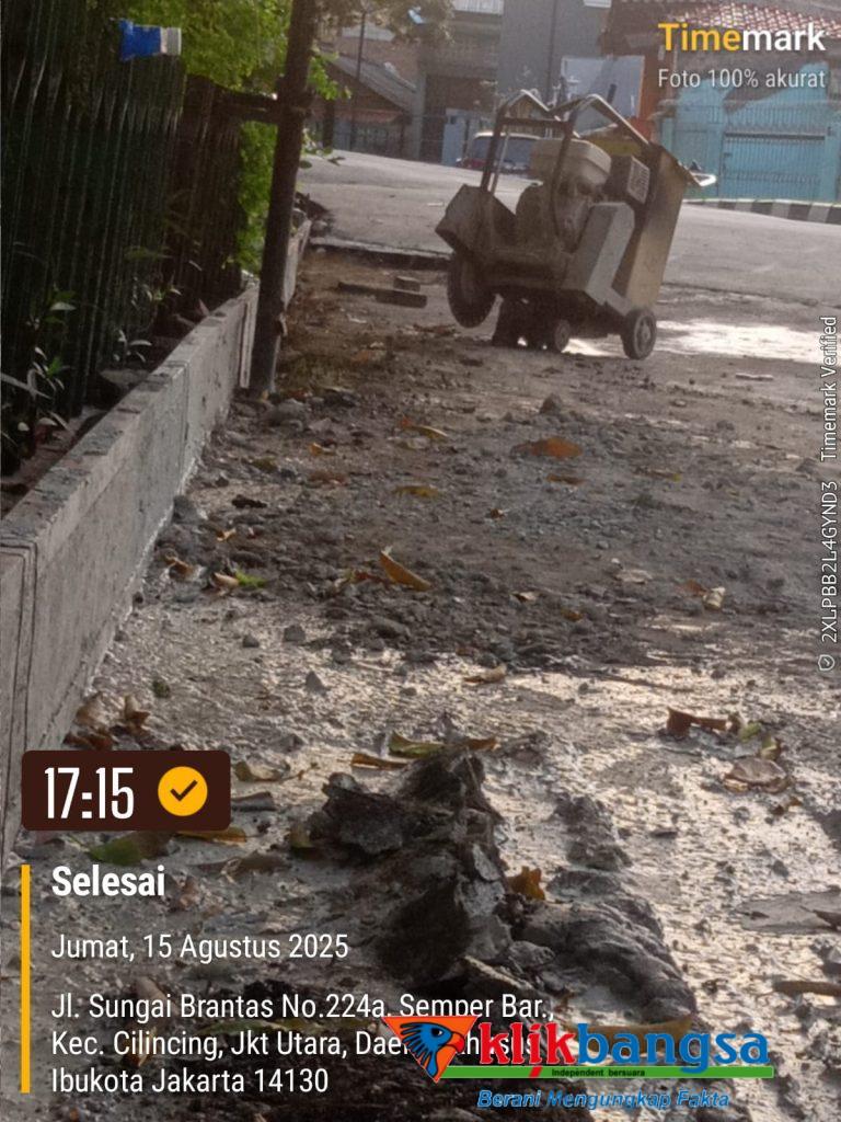 Klikbangsa.com (Jakarta) – Peningkatan Jalan dan kelengkapannya di kota Administrasi Jakarta Utara (Fisik Zona 2) di Jalan Sungai Kampar Rt 013/01 Kelurahan Semper Barat. Kecamatan Cilincing Jakarta Utara.