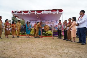 Usai penyampaian sambutan, Bupati Toba Effendi Sintong P. Napitupulu memukul gong sebagai penanda pembukaan secara resmi acara peringatan puncak Hari Kesatuan Gerak Pemberdayaan dan Kesejahteraan Keluarga ke-53 (HKG PKK) dan Pencanangan Bulan Bakti Gotong Royong Masyarakat ke-XXII.