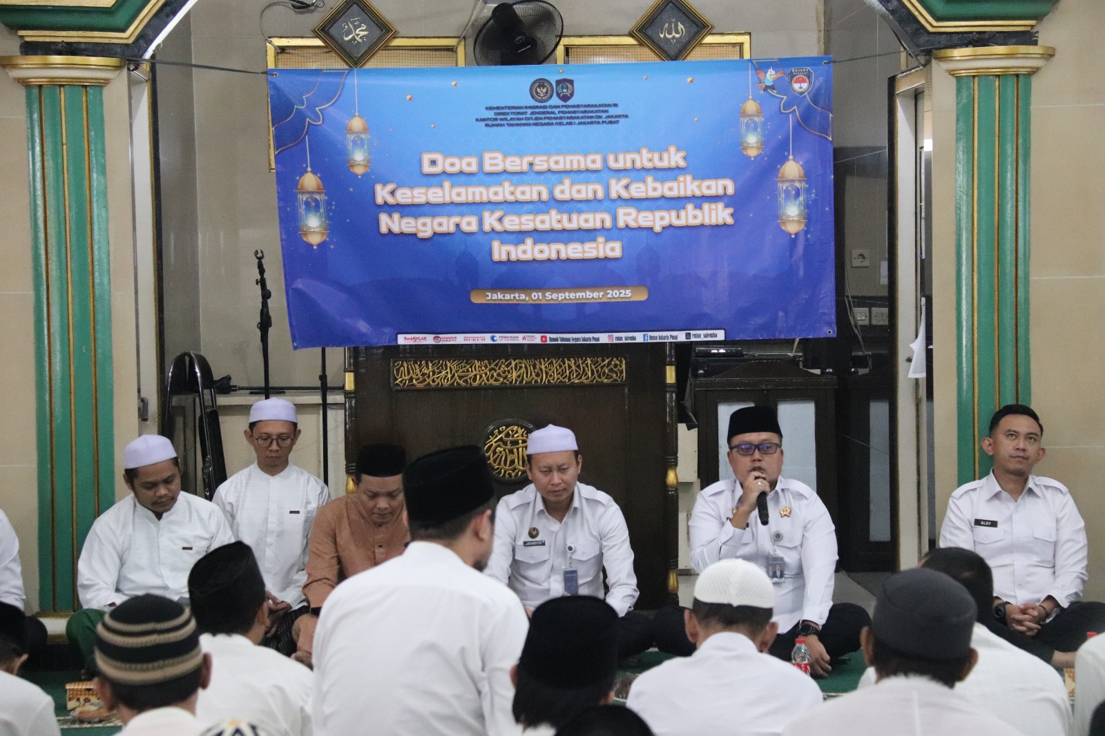 Kepala Rutan Kelas I Jakarta Pusat, Wahyu Trah Utomo, turut hadir dan memimpin jalannya kegiatan doa bersama dari Masjid At-Taubah. Dalam sambutannya, beliau menegaskan bahwa kegiatan doa bersama lintas agama menjadi momentum penting untuk menumbuhkan rasa syukur, memperkuat persaudaraan, serta meneguhkan komitmen kebangsaan di dalam lingkungan Rutan. “Melalui kegiatan ini, kami ingin menanamkan semangat cinta tanah air, mempererat persatuan dan kesatuan bangsa, serta melangkah dengan optimisme menuju indonesia maju,” ungkapnya.