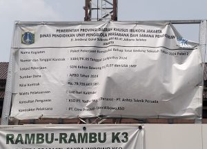 Dia menerangkan, rehab total SDN Kebon Bawang 01, 03, 07 dan USB SMP Kecamatan Tanjung Priok Jakarta Utara, masuk dalam Jasa Konstruksi Rehab Total Gedung Sekolah Tahun 2024 Paket 2 dengan KLPD Satuan Kerja Unit Pelaksana Prasarana dan Sarana Pendidikan Dinas Pendidikan DKI Jakarta.