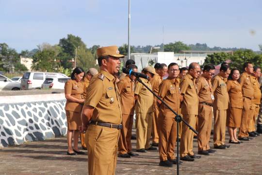 “Mari kita sampaikan kepada masyarakat bahwa menerima bantuan itu bukan kebanggaan. Mereka harus berkembang jika menerima bantuan itu,” ujarnya di hadapan ASN yang mengikuti apel gabungan.