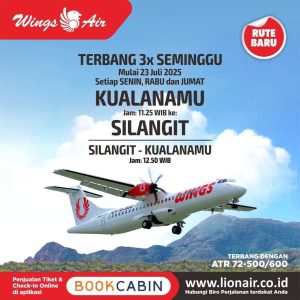klikbangsa.com Kabupaten Toba – Kabar baik bagi masyarakat Tapanuli dan Sumatra Utara. Maskapai Wings Air, bagian dari grup Lion Air, resmi membuka rute penerbangan baru Silangit–Kualanamu pulang-pergi (PP), yang dijadwalkan mulai mengudara pada 23 Juli 2025.