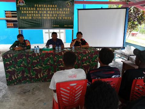 klikbangsa.com Timika, 22 Mei 2025 – Satuan Tugas TNI Manunggal Membangun Desa (Satgas TMMD) Ke-124 Kodim 1710/Mimika menggelar kegiatan penyuluhan hukum di Kampung Pigapu, Distrik Iwaka, Kabupaten Mimika. Kegiatan bertema “Pencegahan Kekerasan dalam Rumah Tangga (KDRT) dan Peranan Hukum dalam Kehidupan Masyarakat” ini bertujuan meningkatkan kesadaran hukum masyarakat.