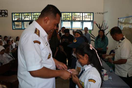“Abang dan kakak di depan ini adalah alumni IPDN. Jika kalian rajin belajar, suatu hari bisa seperti mereka—langsung jadi ASN setelah lulus,” ujar Bupati menyemangati para siswa.
