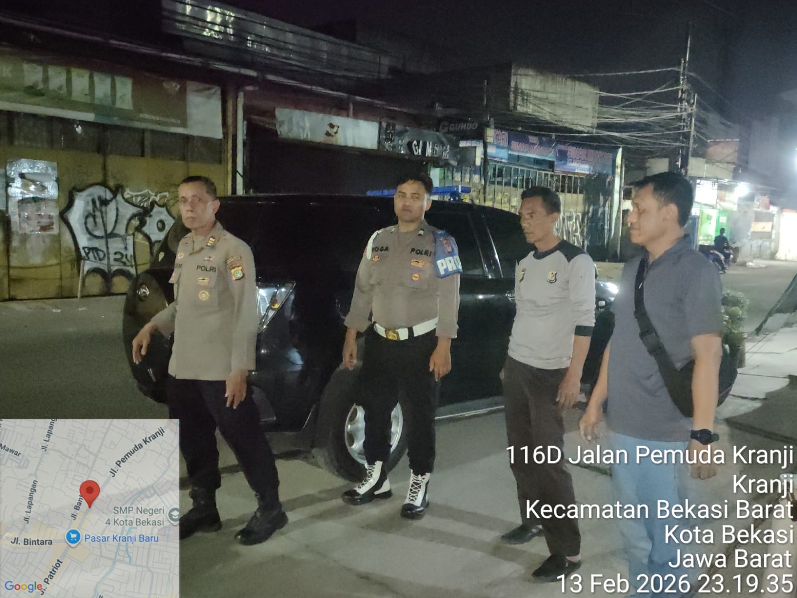 Klikbangsa.com-Kota Bekasi. Untuk mencegah aksi tawuran dan kebut-kebutan sepeda motor yang kerap meresahkan masyarakat, Polsek Bekasi Barat menggelar Patroli Kegiatan Rutin yang Ditingkatkan (KRYD), Jumat (13/2/2026). Kegiatan tersebut dipimpin langsung oleh Wakapolsek, AKP H. Muhtar, SH.