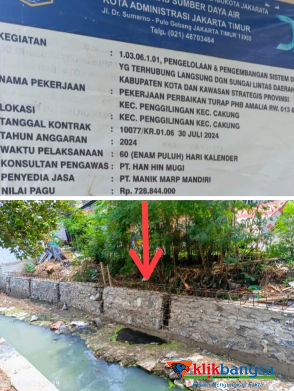“Informasi yang berkembang, diduga, bahwa kontraktor pelaksana Pekerjaan Perbaikan Turap PHB Amalia Penggilingan merupakan rekanan binaan Suku Dinas SDA Jakarta Timur. Membuktikan tidak mampu menyelesaikan pekerjaan kontruksi sesuai dengan kontrak yang ditandatangani,” tandasnya.Senin.(30/9/2024).
