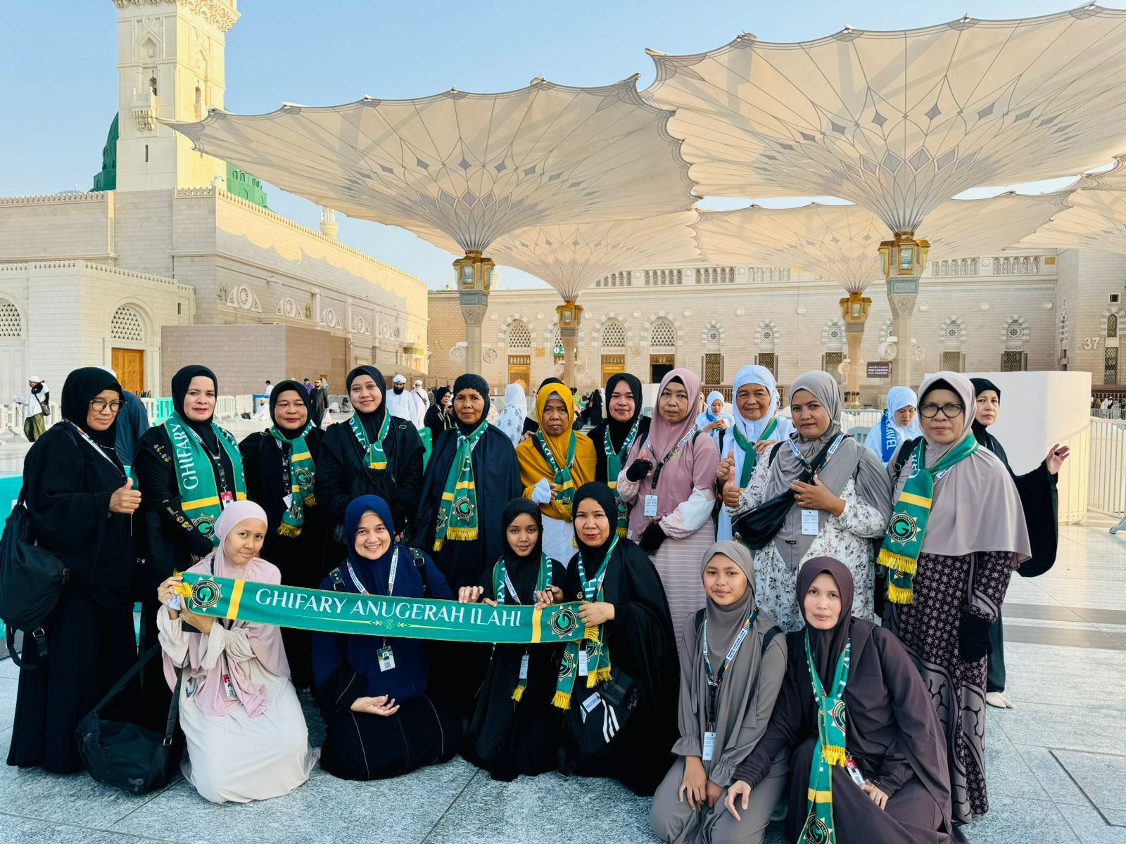 “Alhamdulillah seluruh jamaah Ghifary Anugerah Ilahi Tour and Travel telah sampai di kota medinah al munawarah pada malam hari nya dan pangsung melakukan salam ke rasulullah”, ujar Direktur Utama PT. Ghifary Anugerah Ilahi Anna Zarifah, Senin (26/8/2024).