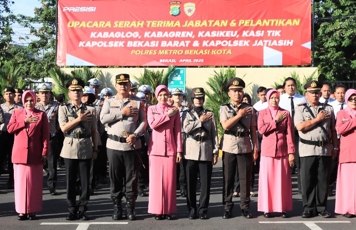 Klikbangsa.com (Kota Bekasi) – Polres Metro Bekasi Kota menggelar upacara serah terima jabatan dan pelantikan pejabat penting di lingkungan kepolisian, Kamis pagi ini, di Lapangan Polres Metro Bekasi Kota, Jalan Pangeran Jayakarta. Kegiatan ini dipimpin langsung oleh Kapolres Metro Bekasi Kota Kombes Pol Kusumo Wahyu Bintoro, SH., SIK., MH., menandai tonggak baru dalam penguatan struktur organisasi untuk mendukung tugas-tugas kepolisian di wilayah Kota Bekasi.(24/5/25)