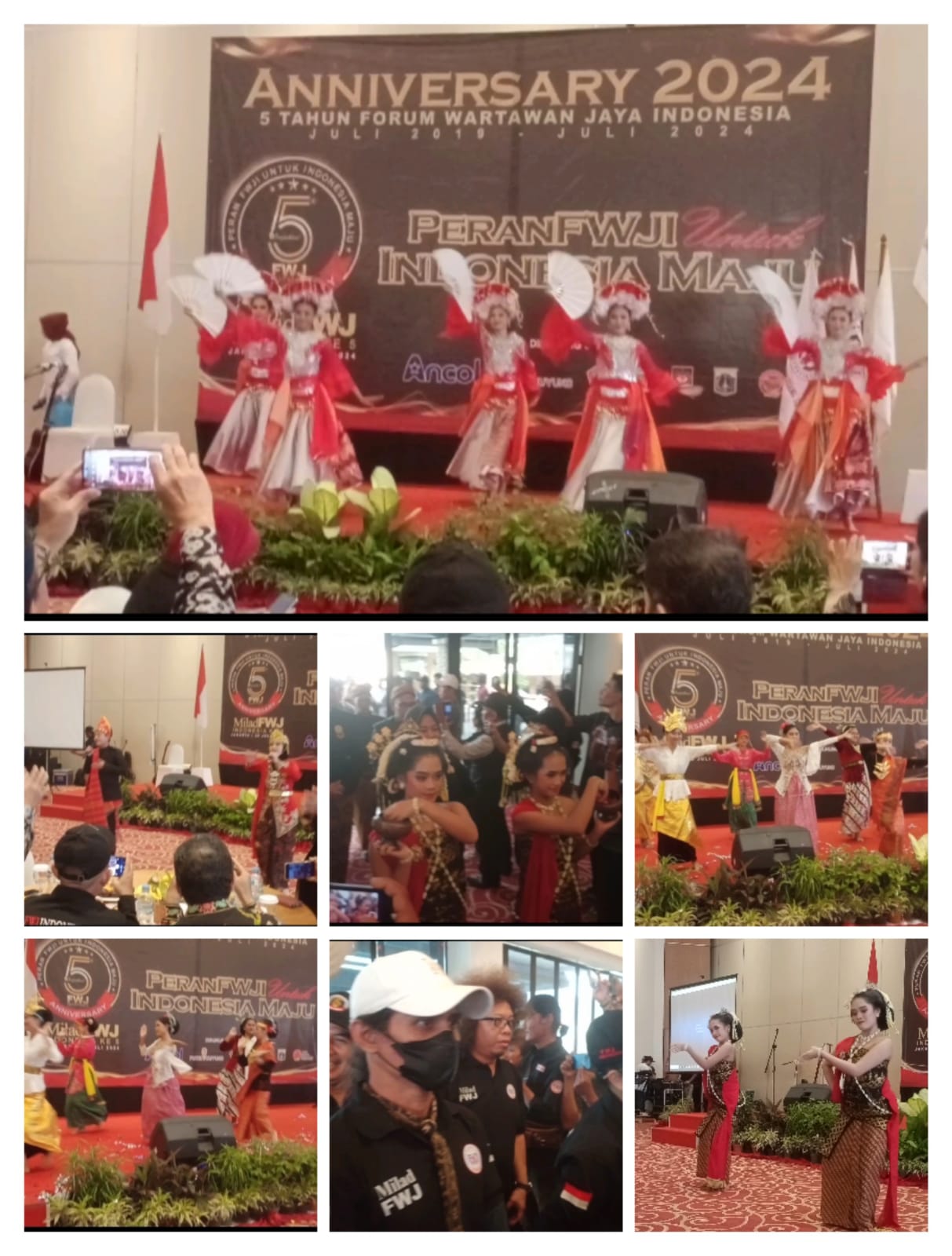 Klikbangsa.com (Jakarta) – Bertempat di aula Candi Bentar Putri Duyung Cottage Ancol pada Minggu 28 Juli 2024, beberapa Tarian Tradisi Nusantara mewarnai Perayaan Hari Ulang Tahun Forum Wartawan Jaya Indonesia ( FWJI ) Anniversary yang ke 5.