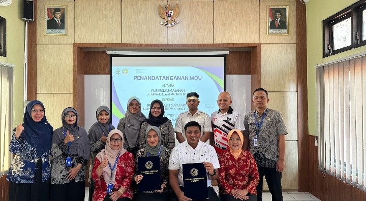 Karutan Surakarta, Bhanad Shofa Kurniawan didampingi Kepala Subseksi Administrasi dan Perawatan, Yudha Nugraha serta Perawat Poliklinik, Umi Budiarti disambut langsung oleh Kepala Puskesmas Gajahan, dr. Farahdilla Mirshanti dan jajaran. Penandatanganan ini merupakan tindak lanjut Rutan Surakarta dalam memberikan pelayanan kesehatan yang prima bagi WBP, salah satu yang ditekankan Karutan pada kesempatan kali ini terkait permohonan bantuan tenaga kesehatan dalam memberikan pelayanan kesehatan bagi WBP. Mengingat jumlah WBP di Rutan Surakarta yang mencapai 700-an orang, diperlukan tenaga kesehatan yang selalu siap dan siaga ketika dibutuhkan.