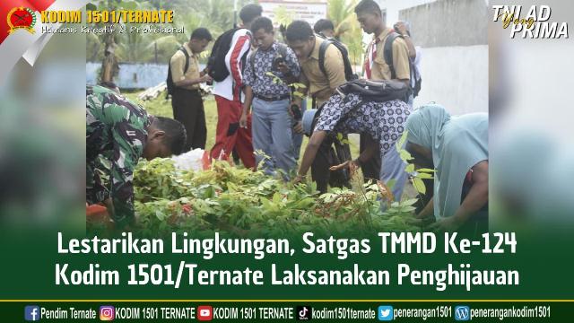 klikbangsa.com Halmahera Barat — Dalam rangka mendukung pelestarian lingkungan dan menciptakan kawasan yang hijau serta asri, Satgas TNI Manunggal Membangun Desa (TMMD) ke-124 Kodim 1501/Ternate menggelar aksi penghijauan dengan menanam berbagai jenis pohon keras di Desa Jarakore, Kecamatan Sahu, Kabupaten Halmahera Barat, Minggu (25/5).