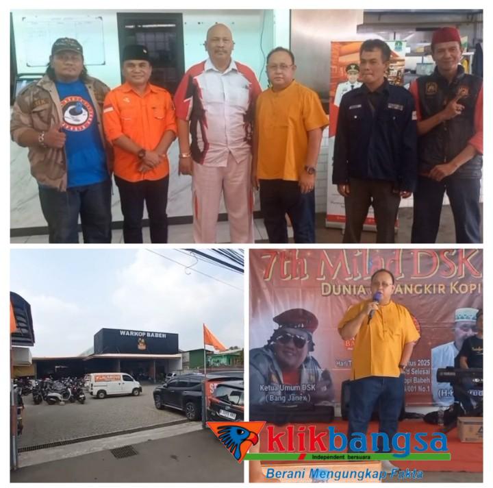 Klikbangsa.com (Kota Bekasi) — Perayaan Milad ke-7 Komunitas Dunia Secangkir Kopi (DSK) dan Konsolidasi Organisasi Masyarakat Gerakan Rakyat DPD Kota Bekasi berlangsung meriah di Warkop Babeh, Jalan Raya Bintara IV, Bekasi, Sabtu (9/8/2025).