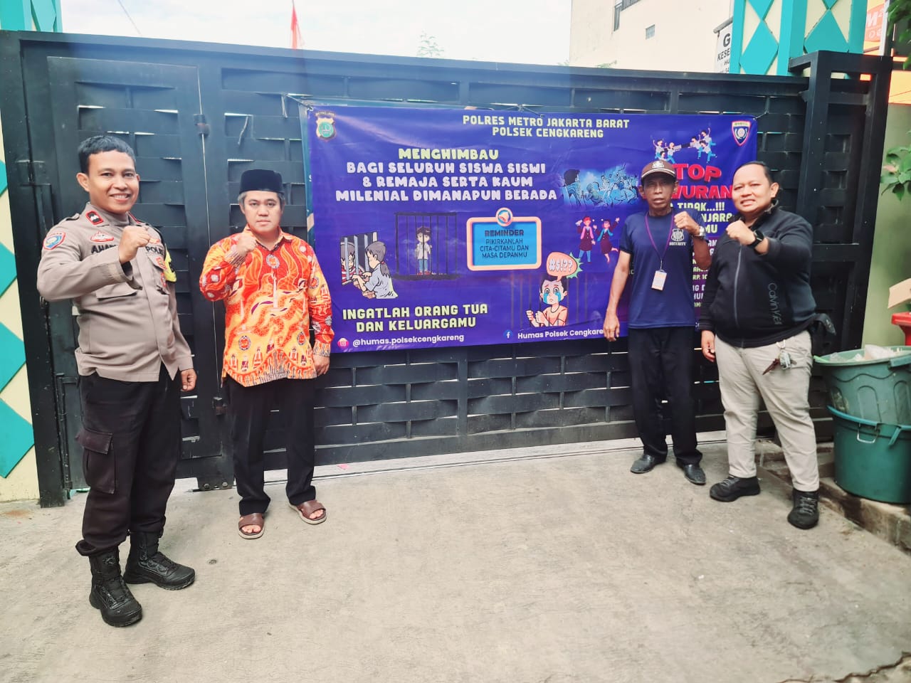 Bahaya akibat tawuran serta ancaman pidana.Pemasangan spanduk dalam upaya menjaga kondusifitas kamtibmas ini, dilakukan di gerbang masuk sekolah SMP dan SMA, SMK yang berada di wilayah hukum Polsek Cengkareng.