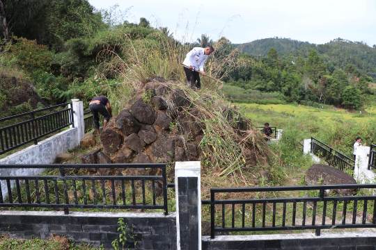 Tak hanya pemerintah daerah, kegiatan ini juga melibatkan pelajar, masyarakat desa, UPTD KPH IV, hingga para aparatur desa. Dengan mesin babat, parang, cangkul, dan semangat tinggi, semak belukar yang sebelumnya menutupi situs Batu Basiha berhasil dibersihkan, menampakkan kembali keindahan alami kawasan ini.