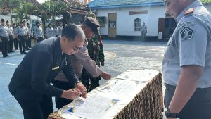 Klikbangsa.com (Surakarta) – Bertempat di Halaman Rutan Kelas I Surakarta, Rutan Surakarta Laksanakan Penandatanganan Komitmen Bersama dan Pencanangan Zona Integritas menuju WBK dan WBBM. Kegiatan dipimpin langsung oleh Kepala Rutan Kelas I Surakarta, Bhanad Shofa Kurniawan, dan mendatangkan saksi dari Kejaksaan Negeri Surakarta, Pengadilan Negeri Kota Surakarta, Kepolisian Sektor Pasar Kliwon Polresta Surakarta, dan Komandan Rayon Militer 05 Pasar Kliwon.