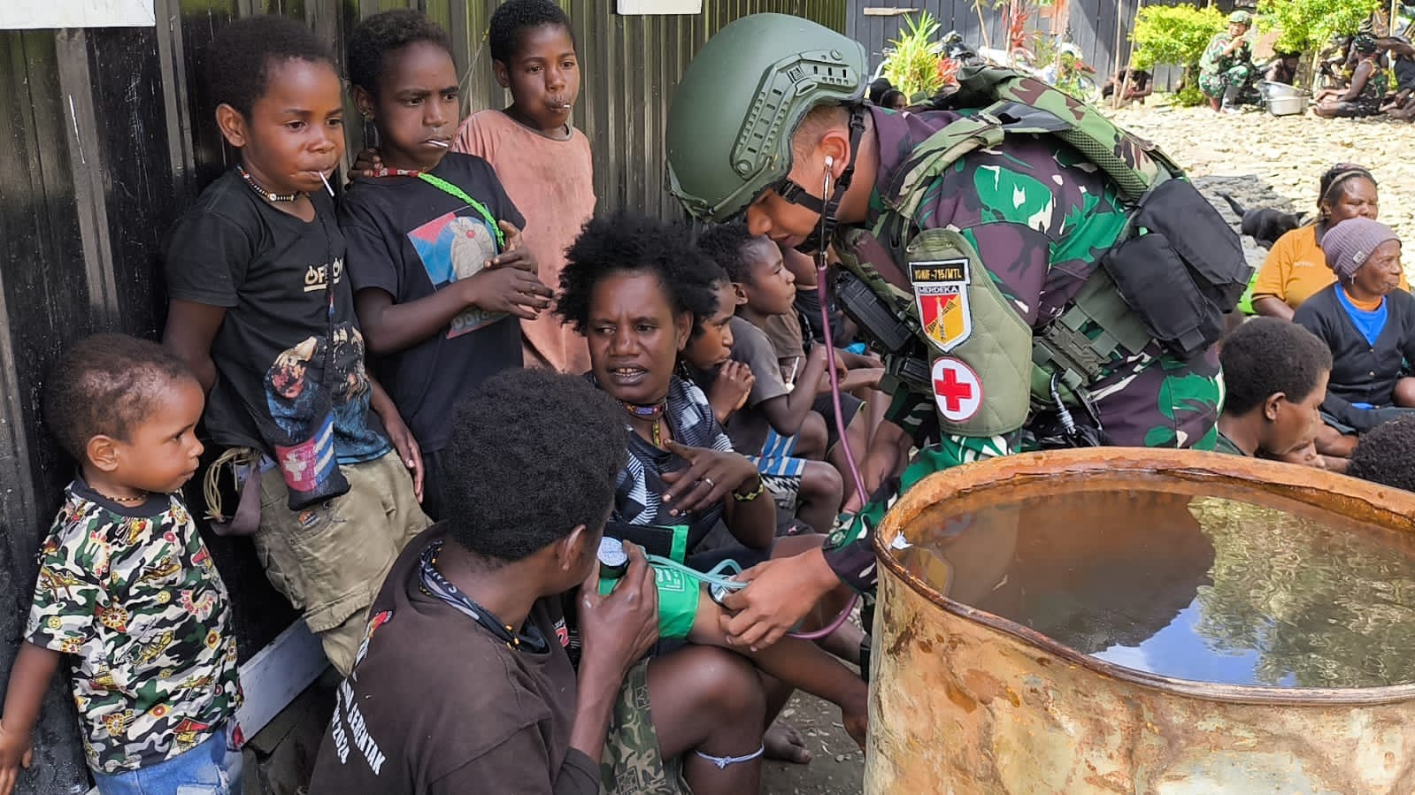 Klikbangsa.com-Puncak Jaya. TNI hadir bukan hanya sebagai penjaga keamanan dan keutuhan wilayah NKRI, inilah yang ditunjukkan oleh Satgas Yonif 715/Mtl yang melaksanakan kegiatan Berbagi berkat, Komunikasi Sosial serta memaksimalkan pelayan kesehatan kepada masyarakat Distrik Mulia Puncak Jaya, Papua Tengah, Minggu (20/04/2025).