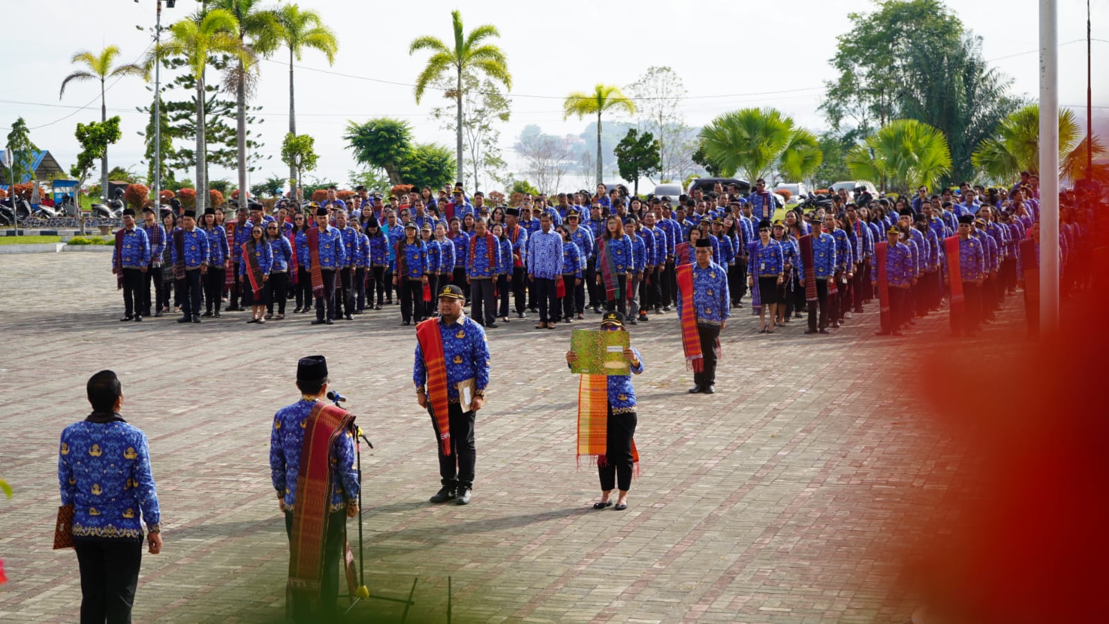 Klikbangsa.com Kabupaten Toba – Sekretaris Daerah Kabupaten Toba, Augus Sitorus, menegaskan pentingnya kedisiplinan aparatur sipil negara (ASN) dalam menjalankan tugas, terutama dalam hal kinerja dan administrasi. Pesan ini disampaikan saat dirinya menjadi pembina apel pada peringatan Hari Kesadaran Nasional yang dirangkai dengan Hari Ulos Nasional, di halaman Kantor Bupati Toba, Jumat (17/10/2025).