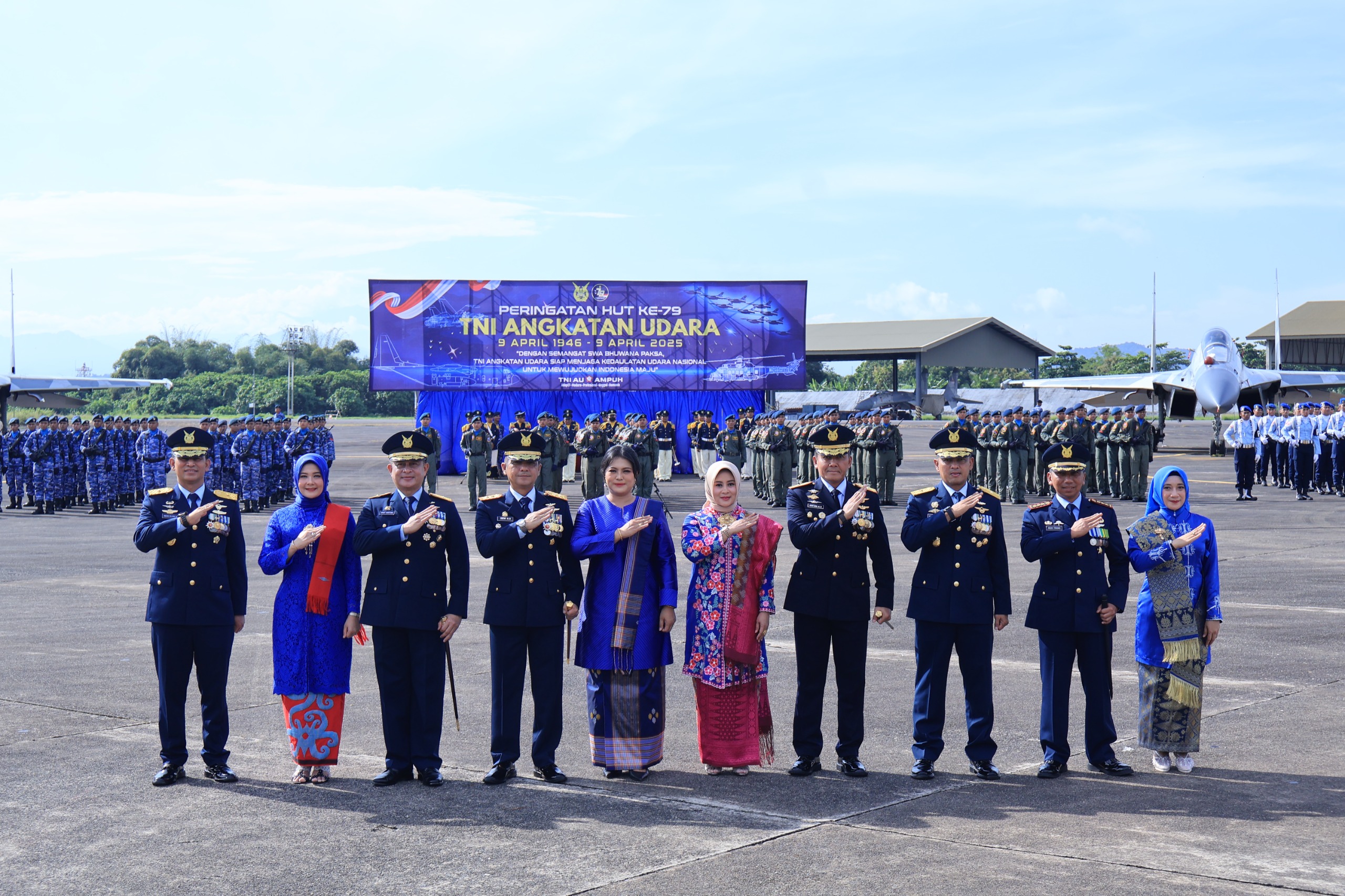 Klikbangsa.com-Makassar. Komandan Lanud Sultan Hasanuddin Marsma TNI Arifaini Nur Dwiyanto, M.Han menghadiri upacara peringatan Hari Ulang Tahun (HUT) ke-79 Tentara Nasional Indonesia (TNI) Angkatan Udara, bertempat di Apron Baseops Lanud Sultan Hasanuddin, Makassar, Rabu (9/4/2025).