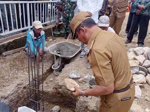 Usai menyampaikan sambutan, Wabup Toba melakukan peletakan batu pertama sebagai simbol dimulainya pembangunan. Ia juga mengiringi prosesi tersebut dengan doa, berharap agar proses pembangunan berjalan lancar hingga rampung.