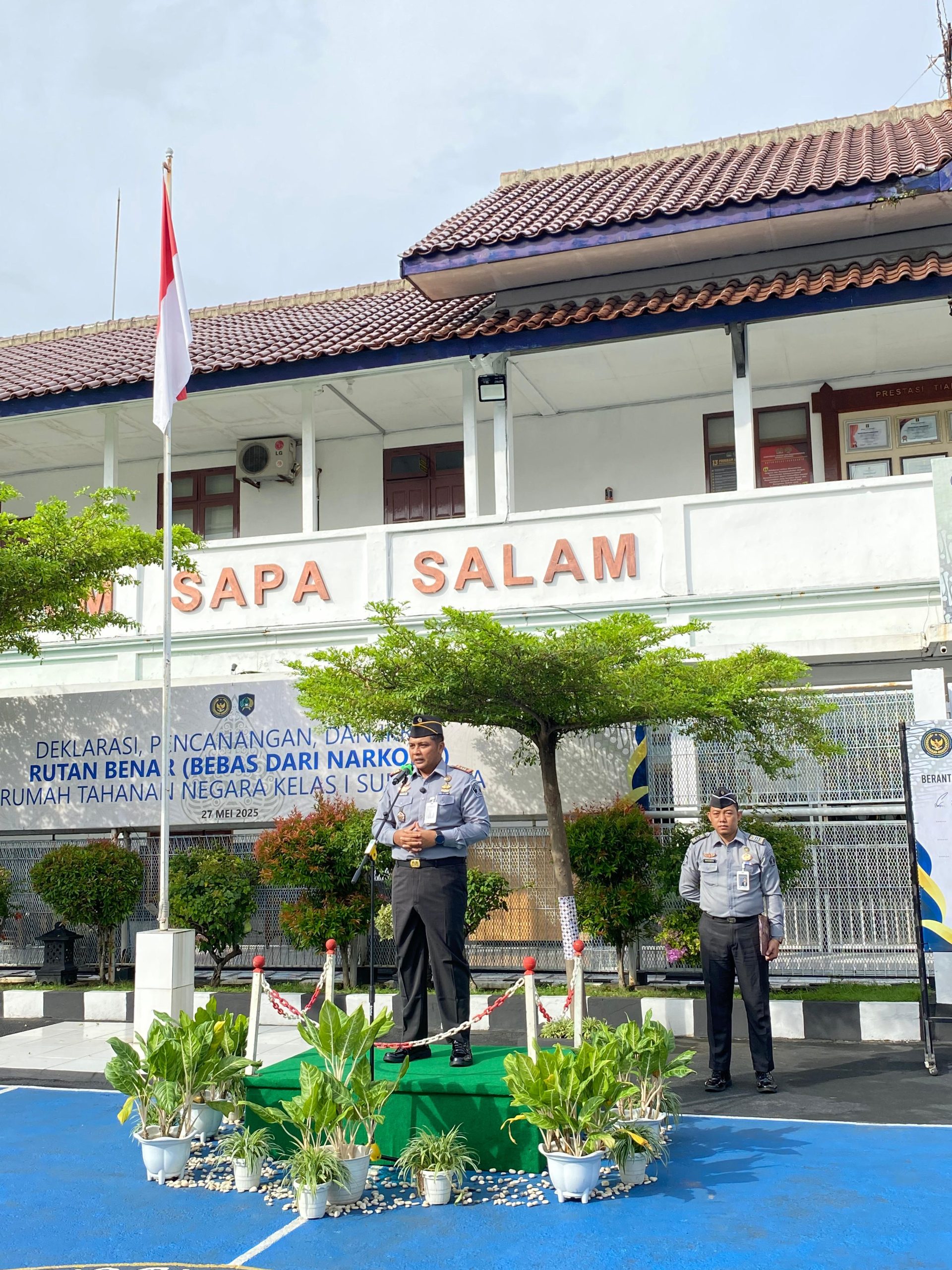 Klikbangsa.com (Surakarta) – Rutan Kelas I Surakarta Kantor Wilayah Direktorat Jenderal Pemasyarakatan Jawa Tengah menindaklanjuti arahan Direktur Jenderal Pemasyarakatan, Brigjen Pol. Drs. Mashudi dengan menggelar kegiatan Deklarasi dan Pencanangan Komitmen Bersama “Rutan BENAR” (Bebas dari Narkoba dan Handphone), bertempat di halaman utama rutan, Selasa (27/05). Kegiatan ini merupakan bagian dari upaya penguatan integritas serta komitmen mewujudkan rutan yang bersih, aman, dan bebas dari barang terlarang.